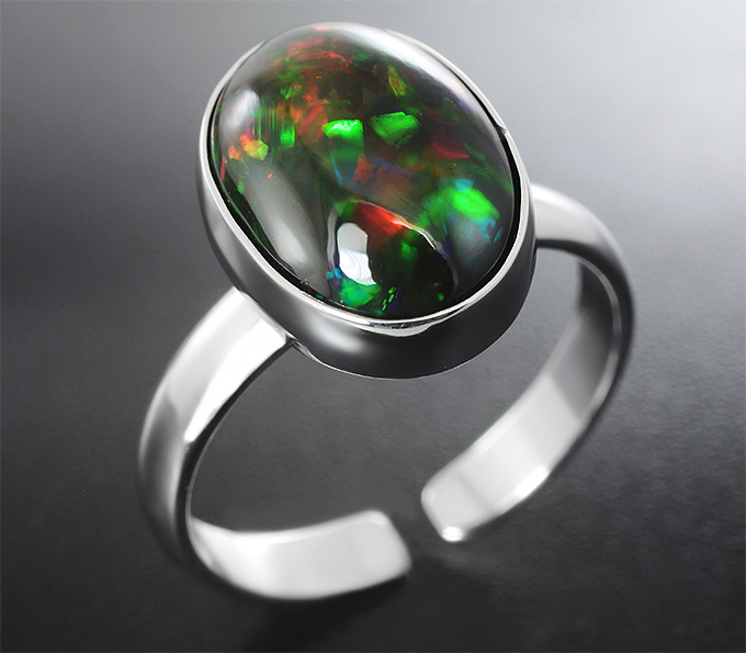 Вашему вниманию предлагается кольцо из стерлингового серебра (925 проба) c кристаллическим черным опалом! Основные цвета опалесценции: красный, желтый и зеленый. Размеры вставок 12 х 9 мм. Площадка 13 х 10 мм, высота 7 мм. Вес изделия 3,3 г. Размер регулируемый: 16,5 и выше. Ниже приводятся ювелирные характеристики.