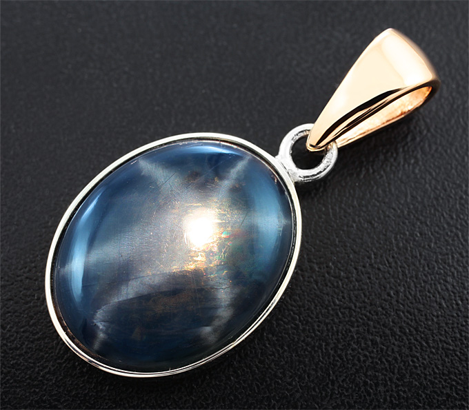 Вашему вниманию предлагается кулон из стерлингового серебра (925 проба) с петлей из золота 585 пробы, инкрустированный звездчатым сапфиром! Размеры кулона с петлей 28 х 13 мм. Вес 2,8 г. Ниже приводятся ювелирные характеристики вставки.