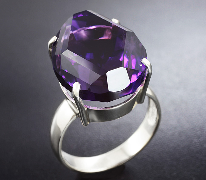 Вашему вниманию предлагается кольцо из стерлингового серебра (925 проба) c роскошным аметистом авторской огранки! Площадка 17,8 х 14,8 мм, высота 13 мм. Вес изделия 7,6 г. Размер 18. Ниже приводятся ювелирные характеристики вставки.