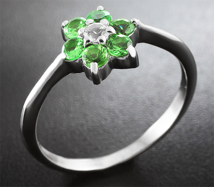 Кольцо c цаворитами гранатами и лейкосапфиром
