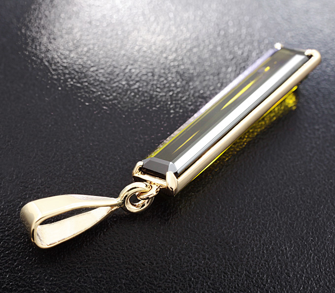 Вашему вниманию предлагается кулон из золота 585 пробы с верделит турмалином! Размеры кулона с петлей 35 х 6 мм. Вес 1,8 г. Ниже приводятся ювелирные характеристики вставки.