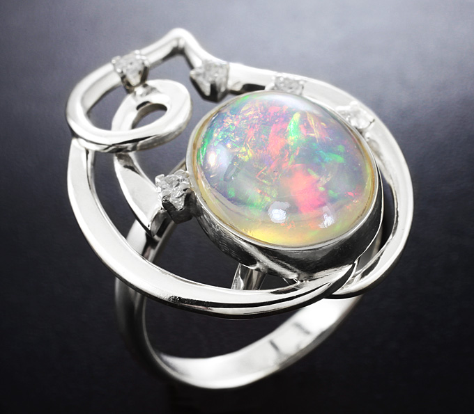 Вашему вниманию предлагается кольцо из стерлингового серебра (925 проба) c эфиопским кристаллическим Welo опалом! Основные цвета опалесценции: красный, желтый и зеленый. Площадка 27 х 21 мм, высота 8 мм. Вес изделия 5,7 г. Размер 17. Ниже приводятся ювелирные характеристики вставки.