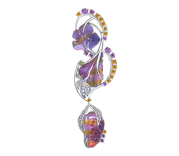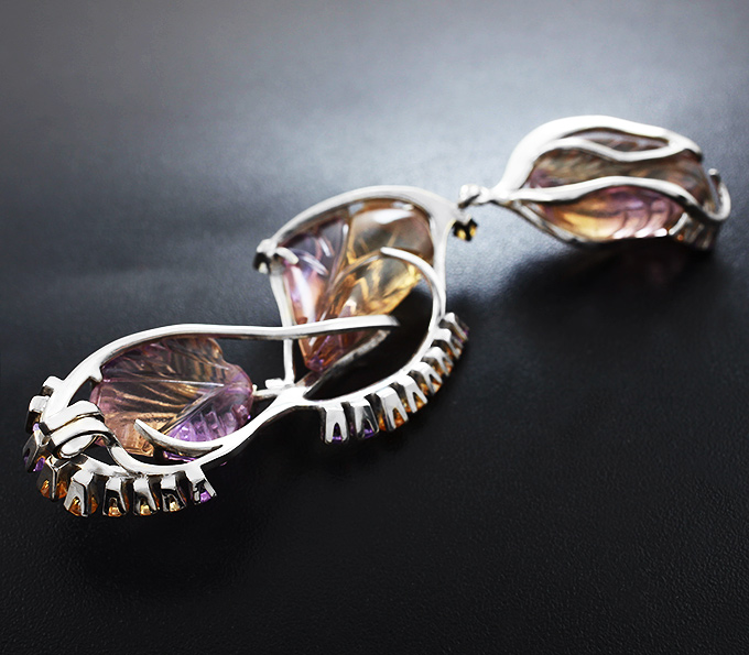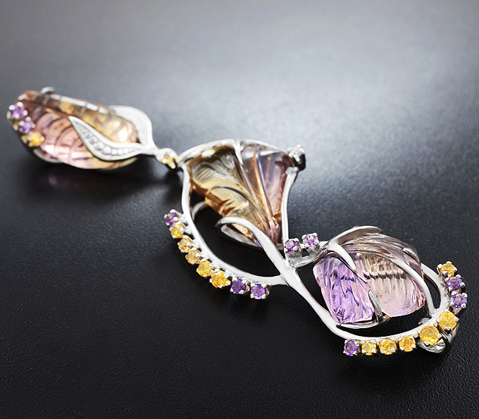 Кулон с резными аметринами и разноцветными сапфирами