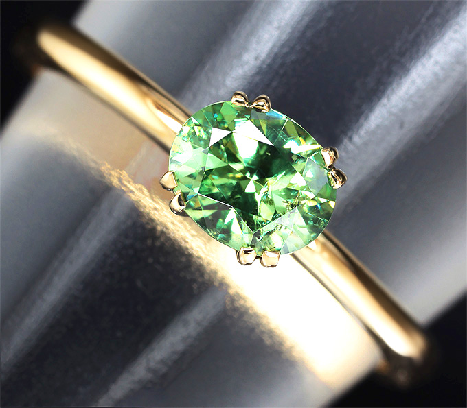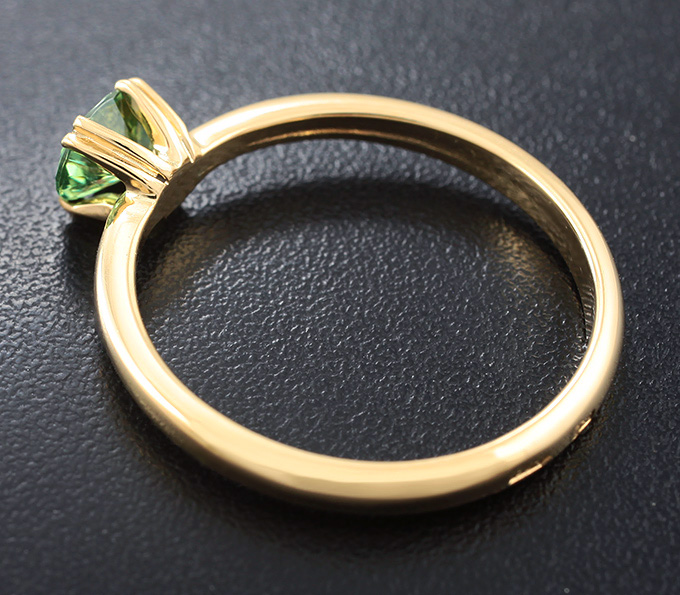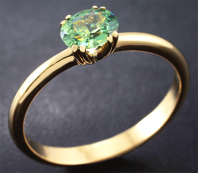 Вашему вниманию предлагается кольцо из золота 750 пробы с демантоидом! Площадка 6 х 5 мм, высота 4 мм. Вес изделия 2,5 г. Размер 17. Ниже приводятся ювелирные характеристики вставки.