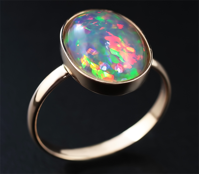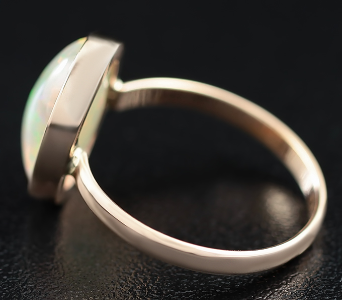Вашему вниманию предлагается кольцо из золота 585 пробы с эфиопским кристаллическим опалом! Основные цвета опалесценции: красный, желтый и зеленый. Площадка 15 х 12 мм, высота 6 мм. Вес изделия 2,9 г. Размер 19. Ниже приводятся ювелирные характеристики вставки.
