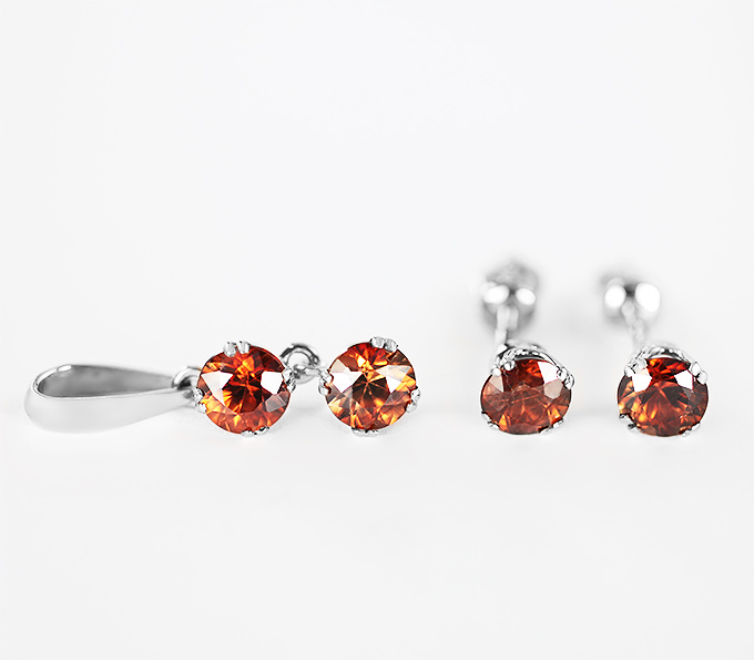 Вашему вниманию предлагается комплект (пусеты + кулон) из золота 585 пробы с коньячными цирконами! Вес комплекта 2,7 г.