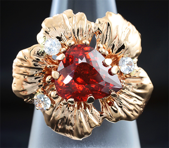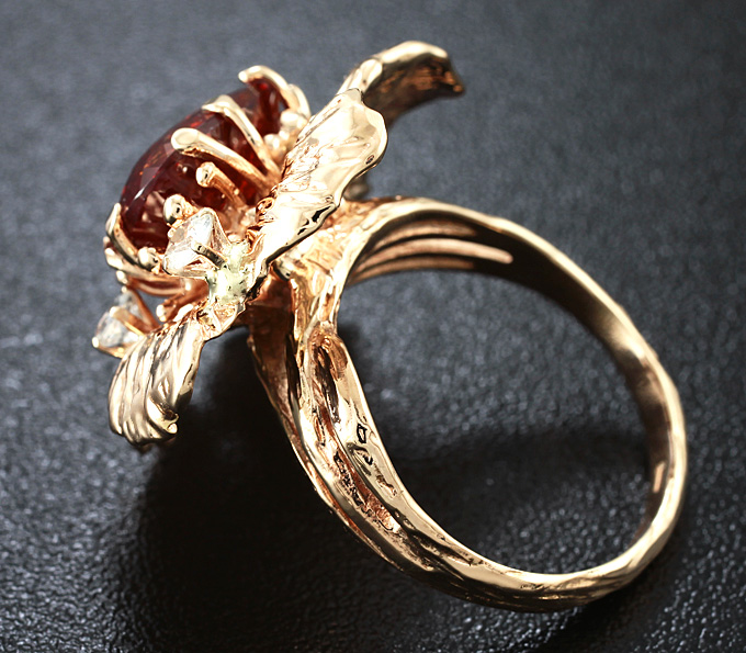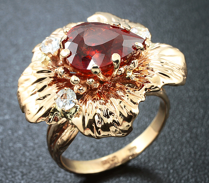 Вашему вниманию предлагается кольцо из золота 585 пробы с ярко-оранжевым спессартином гранатом! Площадка 27 х 24 мм, высота 12 мм. Вес изделия 13,5 г. Размер 19. Ниже приводятся ювелирные характеристики вставки.