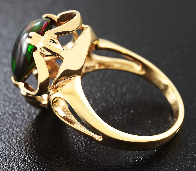 Вашему вниманию предлагается кольцо из золота 585 пробы с кристаллическим черным опалом! Размеры вставок 12 х 9 мм. Площадка 19 х 15 мм, высота 11 мм. Вес изделия 5,3 г. Размер 16,75. Ниже приводятся ювелирные характеристики вставки.