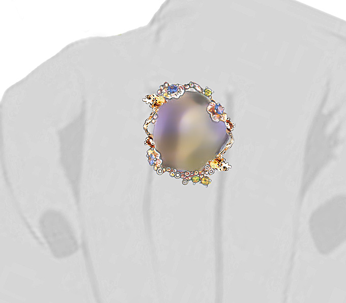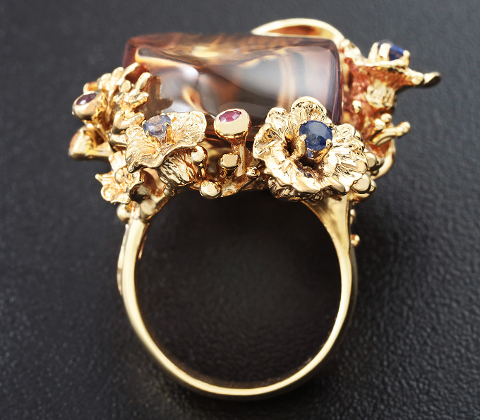 Кольцо c кабошоном аметрина и разноцветными сапфирами
