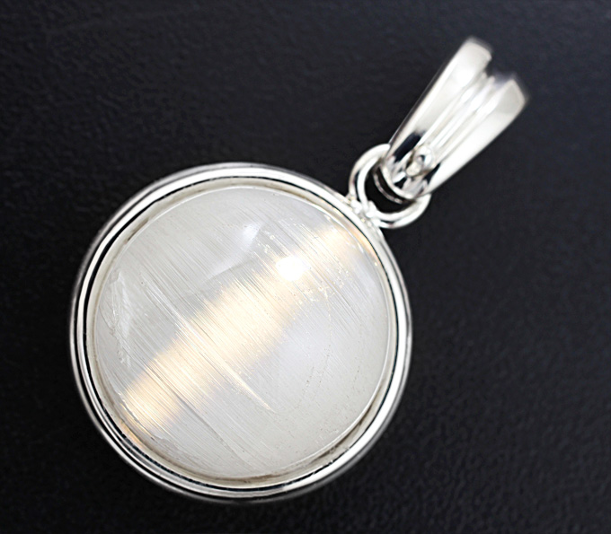 Кулон, инкрустированный гошенитом с эффектом «кошачьего глаза»