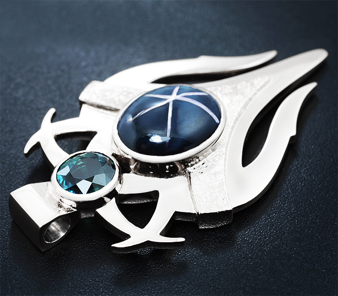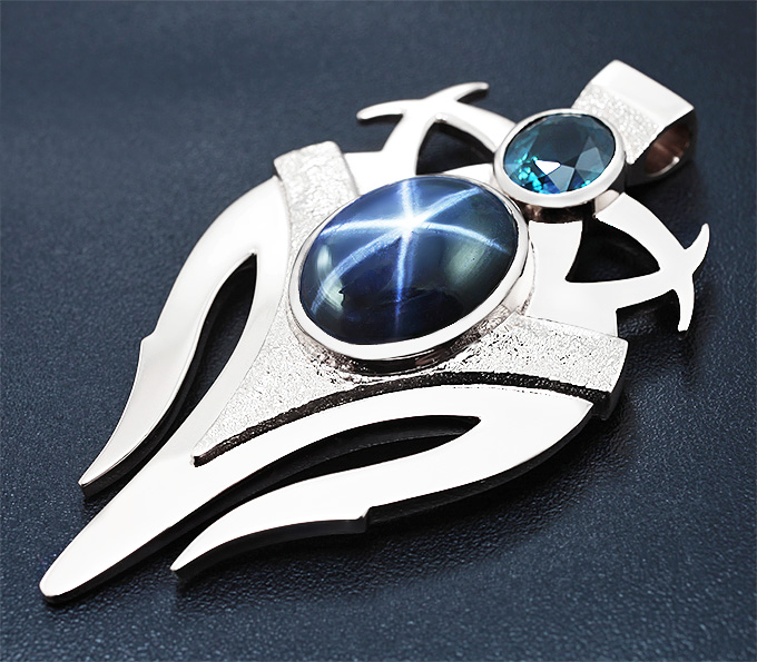 Кулон с полихромным и звездчатым сапфирами