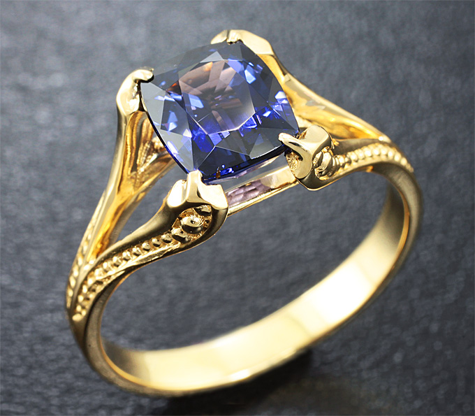 Вашему вниманию предлагается кольцо из золота 750 пробы с синей шпинелью! Площадка 10 х 8 мм, высота 6 мм. Вес изделия 4,1 г. Размер 17,5. Ниже приводятся ювелирные характеристики.