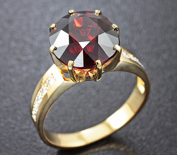 Вашему вниманию предлагается кольцо из золота 750 пробы со спессартином гранатом и бриллиантами! Диаметр вставок 1,5 мм. Площадка 21 х 12 мм, высота 10 мм. Вес изделия 5,8 г. Размер 19. Ниже приводятся ювелирные характеристики граната.