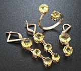 Вашему вниманию предлагается комплект (кольцо + серьги + кулон) из золота 585 пробы с гелиодорами! Вес комплекта 12,8 г.