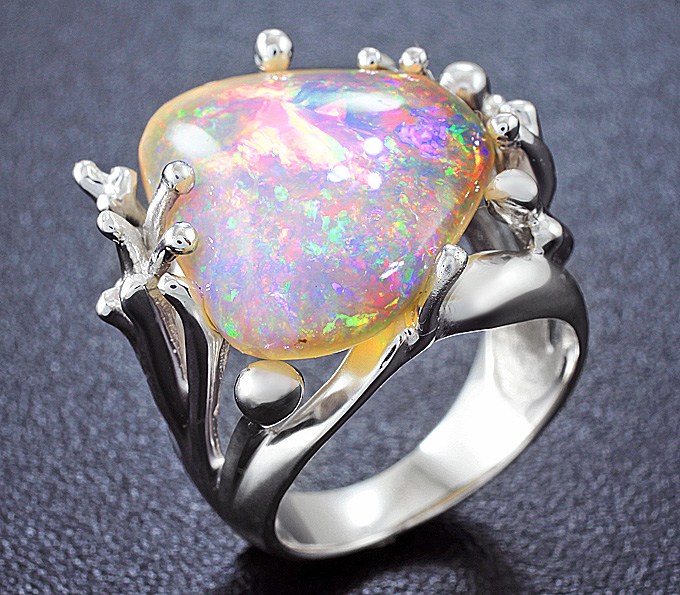 Кольцо c крупным эфиопским опалом