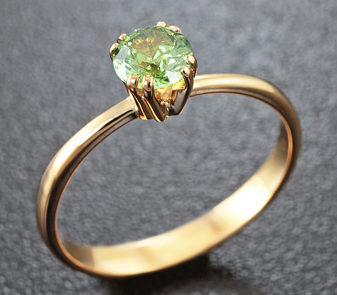 Вашему вниманию предлагается кольцо из золота 585 пробы с уральским демантоидом! Площадка 5,1 х 5,1 мм, высота 5 мм. Вес изделия 2 г. Размер 17,25. Ниже приводятся ювелирные характеристики вставки.
