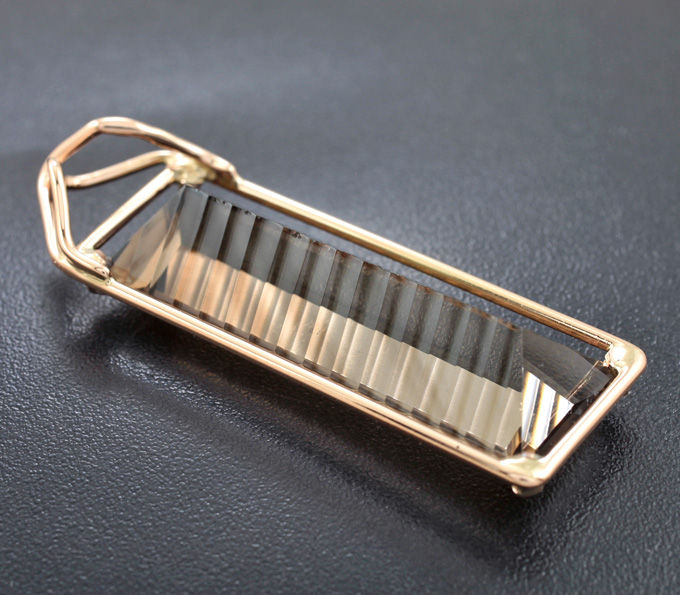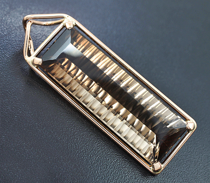 Вашему вниманию предлагается кулон из золота 585 пробы с дымчатым кварцем авторской огранки! Площадка кулона 43 х 19 мм. Вес 6,1 г. Ниже приводятся ювелирные характеристики вставки.