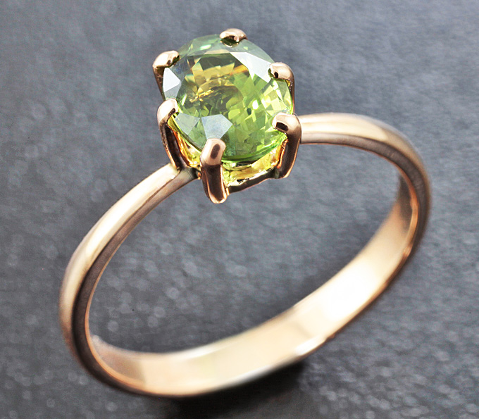 Вашему вниманию предлагается кольцо из золота 585 пробы c зеленым сапфиром! Размеры вставок 7 х 5 мм. Площадка 7 х 6 мм, высота 5 мм. Вес изделия 2 г. Размер 17. Ниже приводятся ювелирные характеристики вставки.