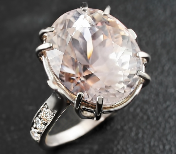 Вашему вниманию предлагается кольцо из золота 585 пробы с розовым кунцитом и бриллиантами! Диаметр бриллиантов 2 мм. Площадка 19 х 15 мм, высота 11 мм. Вес изделия 5,5 г. Размер 16. Ниже приводятся ювелирные характеристики кунцита.