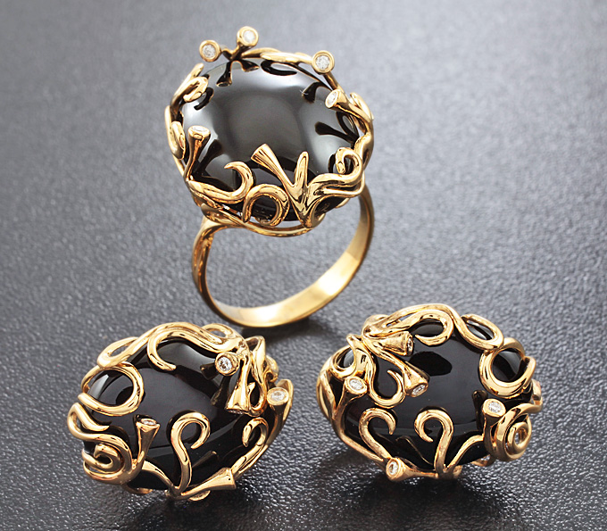 Вашему вниманию предлагается комплект (кольцо + серьги) из золота 585 пробы с шерлами и бриллиантами! Диаметр бриллиантов 1,5 мм. Вес комплекта 26,2 г.