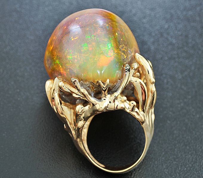 Кольцо c кристаллическим Welo опалом эксклюзивного размера