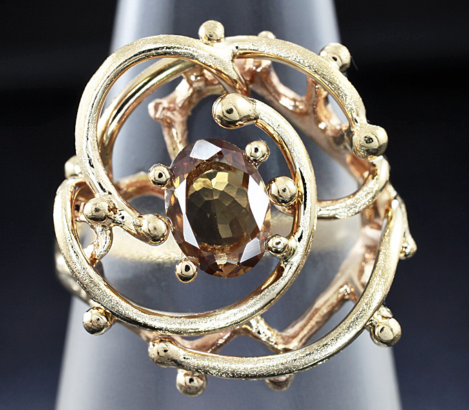 Кольцо, инкрустированное гранатом со сменой цвета