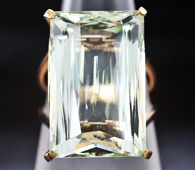 Вашему вниманию предлагается кольцо из золота 585 пробы c зеленым бериллом! Площадка 22 х 15 мм, высота 12 мм. Вес изделия 8,8 г. Размер 17,75. Ниже приводятся ювелирные характеристики вставки.