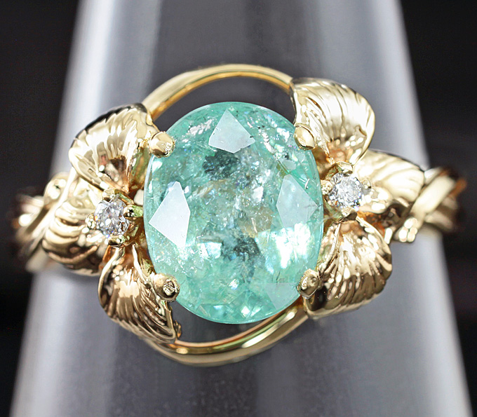 Вашему вниманию предлагается кольцо из золота 585 пробы с параиба турмалином и бриллиантами! Диаметр бриллиантов 1,5 мм. Площадка 11 х 11 мм, высота 6 мм. Вес изделия 3,8 г. Размер 17. Ниже приводятся ювелирные характеристики турмалина.