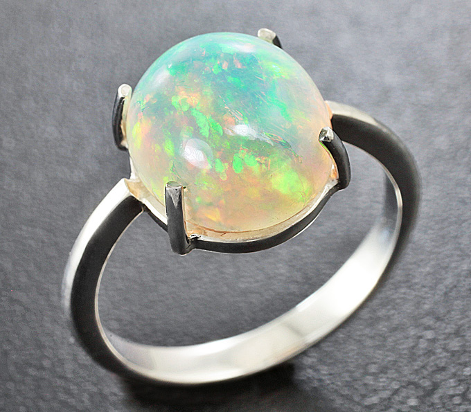 Вашему вниманию предлагается кольцо из стерлингового серебра (925 проба) c кристаллический Welo опалом! Основные цвтеа опалесценции: красный, желтый и зеленый. Площадка 12 х 10 мм, высота 8 мм. Вес изделия 3,4 г. Размер 18. Ниже приводятся ювелирные характеристики вставки.