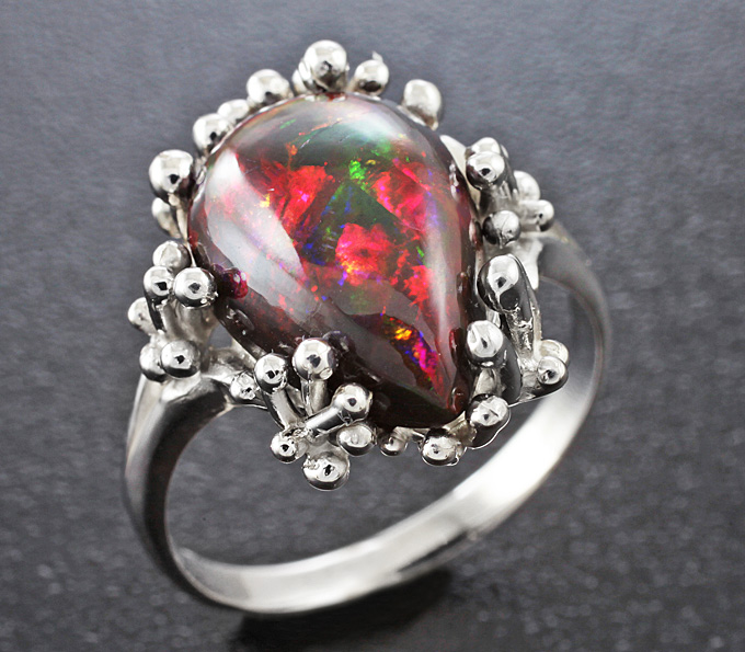 Вашему вниманию предлагается кольцо из стерлингового серебра (925 проба) c кристаллическим черным опалом! Основные цвета опалесценции: красный и желтый. Площадка 18 х 16 мм, высота 6 мм. Вес изделия 4 г. Размер 18. Ниже приводятся ювелирные характеристики.