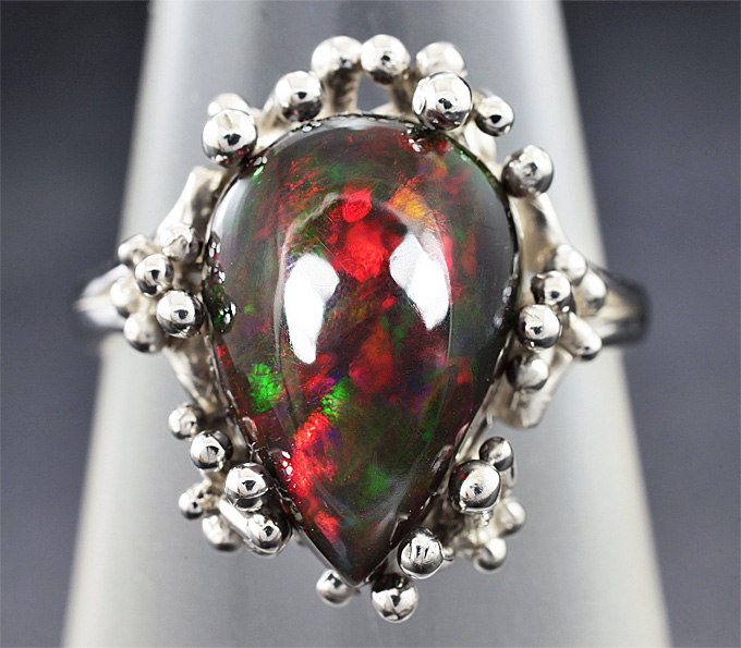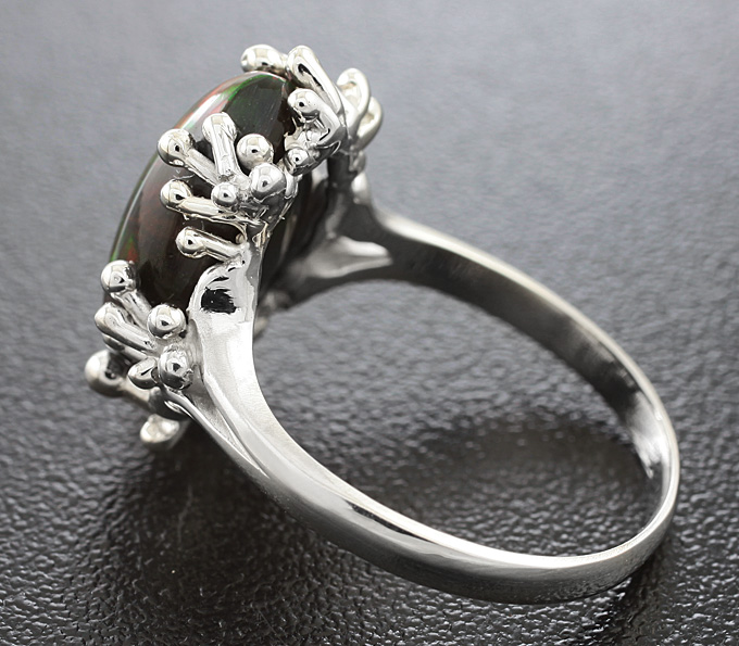 Кольцо c кристаллическим черным опалом