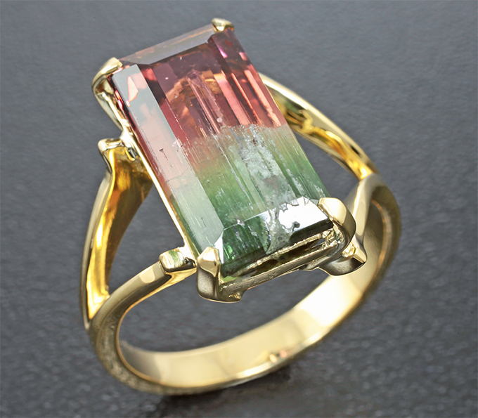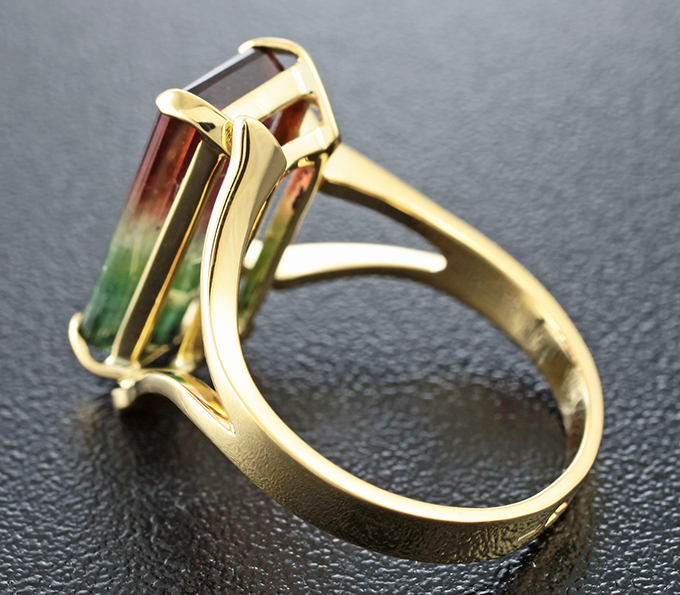 Вашему вниманию предлагается кольцо из золота 750 пробы c арбузным турмалином! Площадка 19 х 10 мм, высота 7 мм. Вес изделия 5,9 г. Размер 18. Ниже приводятся ювелирные характеристики вставки.