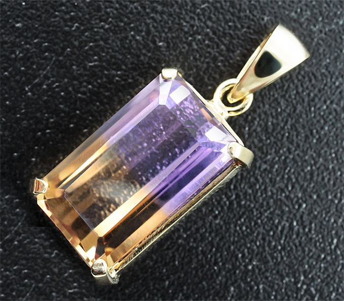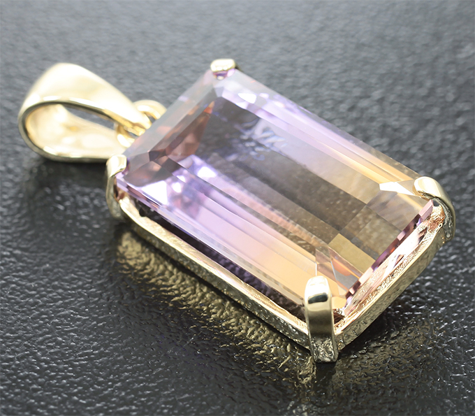 Вашему вниманию предлагается кулон из золота 585 пробы с аметрином! Размеры вставок 17 х 11 мм. Размеры кулона с петлей 29 х 12 мм. Вес 4,1 г. Ниже приводятся ювелирные характеристики вставки.