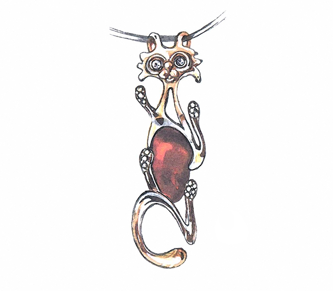 Кулон с мексиканским огненным опалом, цаворитами гранатами и 4 бриллиантами