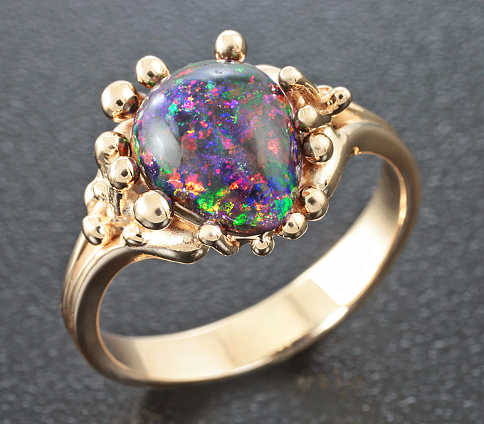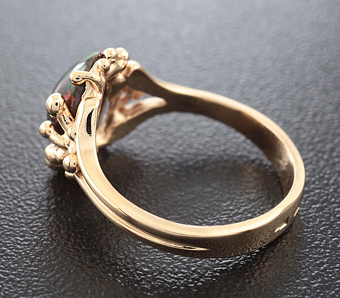 Вашему вниманию предлагается кольцо из золота 585 пробы c кристаллическим черным опалом! Основные цвета опалесценции: красный, желтый и зеленый. Площадка 13 х 12 мм, высота 5 мм. Вес изделия 4,2 г. Размер 17,25. Ниже приводятся ювелирные характеристики вставки.