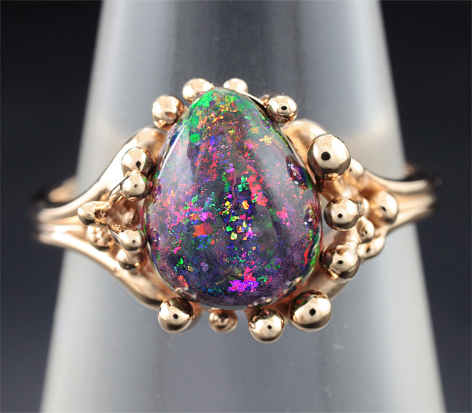 Кольцо c кристаллическим черным опалом