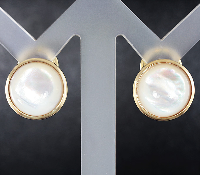 Вашему вниманию предлагаются серьги из золота 585 пробы с перламутром! Диаметр вставок 12 мм. Площадка серег 14 х 14 мм. Вес пары 6,6 г.