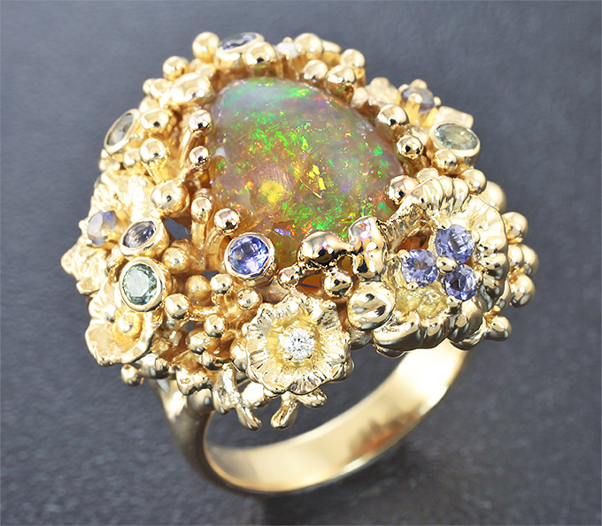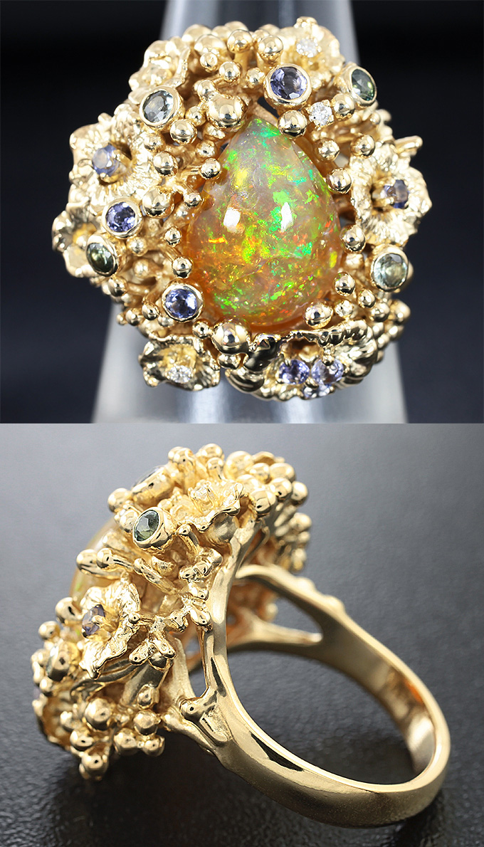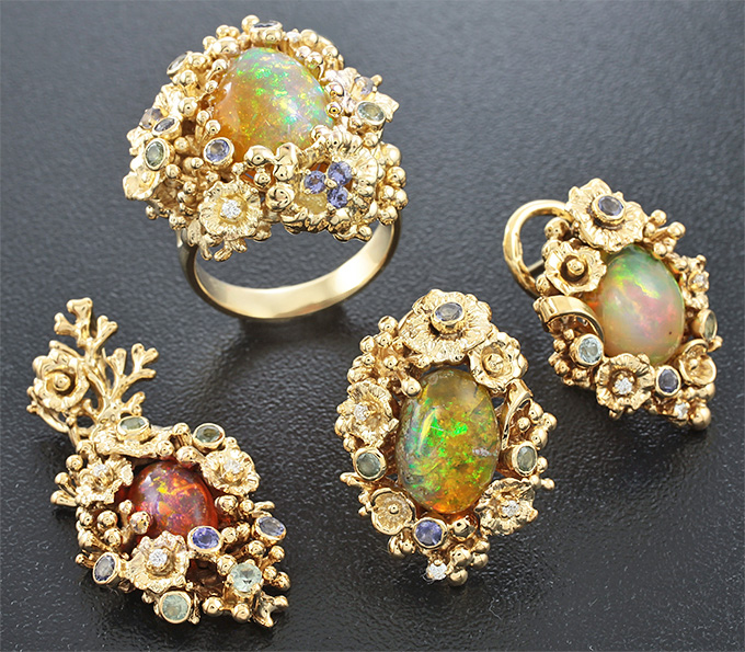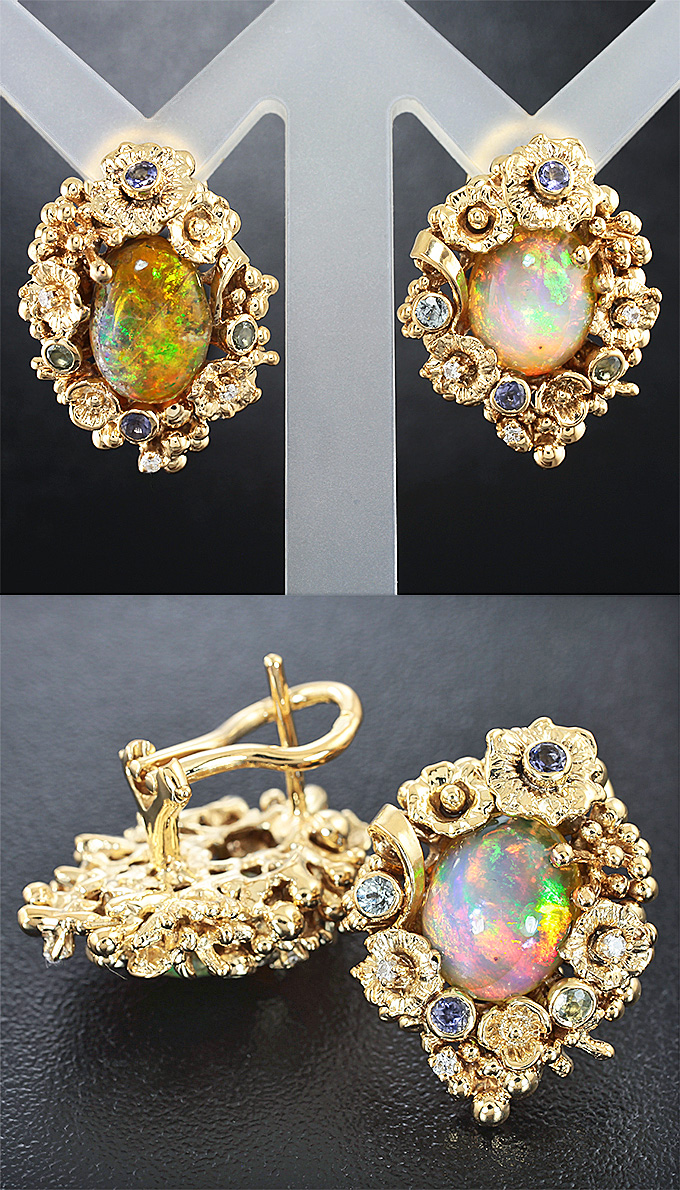 Комплект с кристаллическими Welo опалами, танзанитами, сапфирами и бриллиантами