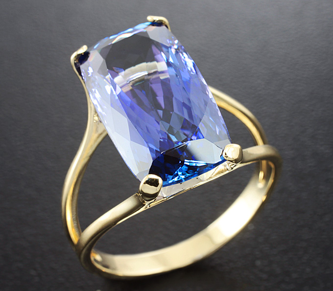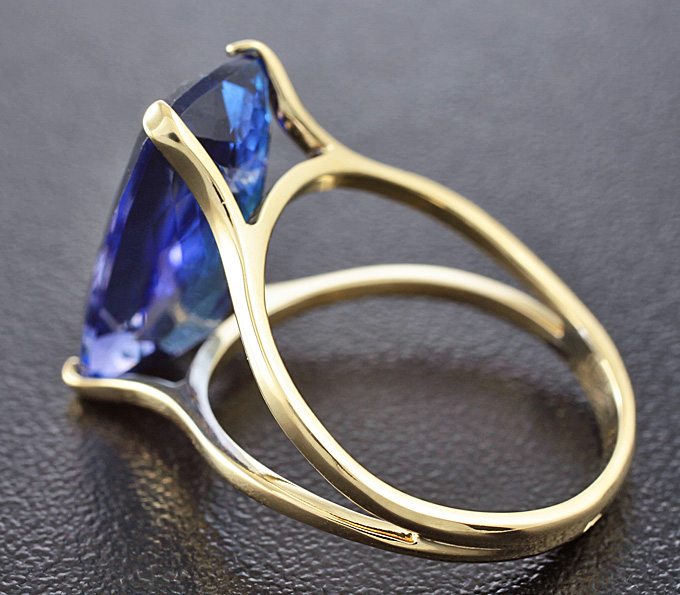 Вашему вниманию предлагается кольцо из золота 585 пробы с чистейшим крупным танзанитом! Площадка 17 х 9 мм, высота 7 мм. Вес изделия 4,3 г. Размер 18. Ниже приводятся ювелирные характеристики вставки.