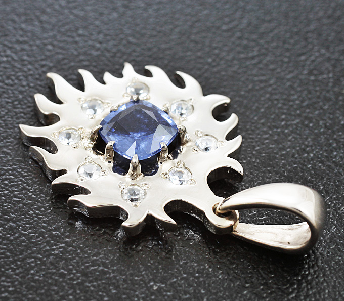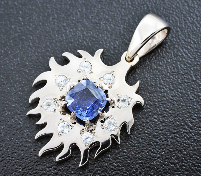 Кулон с синим и бесцветными сапфирами