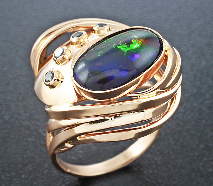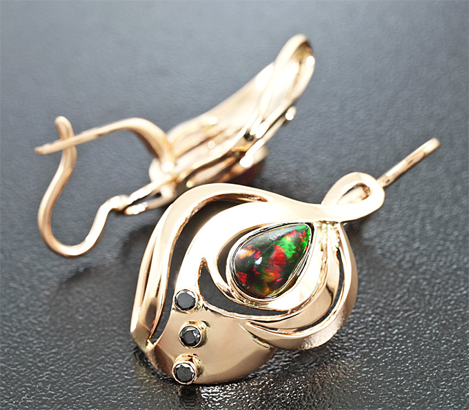 Комплект с черными опалами и бриллиантами