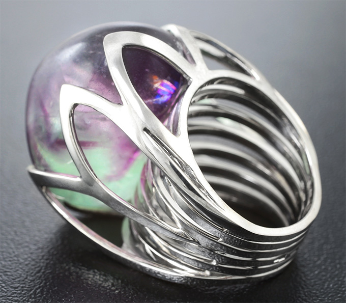 Вашему вниманию предлагается кольцо из золота 585 пробы с флюоритом! Площадка 26 х 25 мм, высота 19 мм. Вес изделия 29,1 г. Размер 17,5. Ниже приводятся ювелирные характеристики.