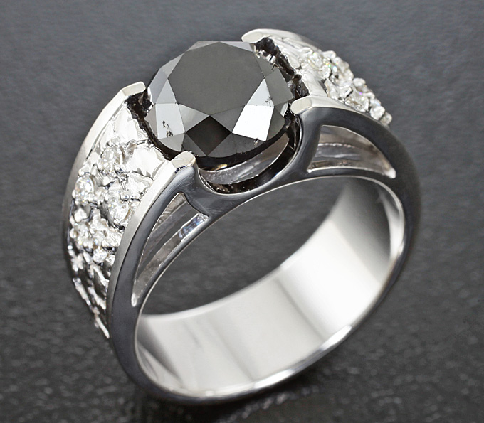 Вашему вниманию предлагается кольцо из золота 585 пробы с черным и белыми бриллиантами! Диаметр дополнительной инкрустации 1,5 мм. Ширина площадки 8 мм, высота 7 мм. Вес изделия 6,6 г. Размер 16. Ниже приводятся ювелирные характеристики черного бриллианта.