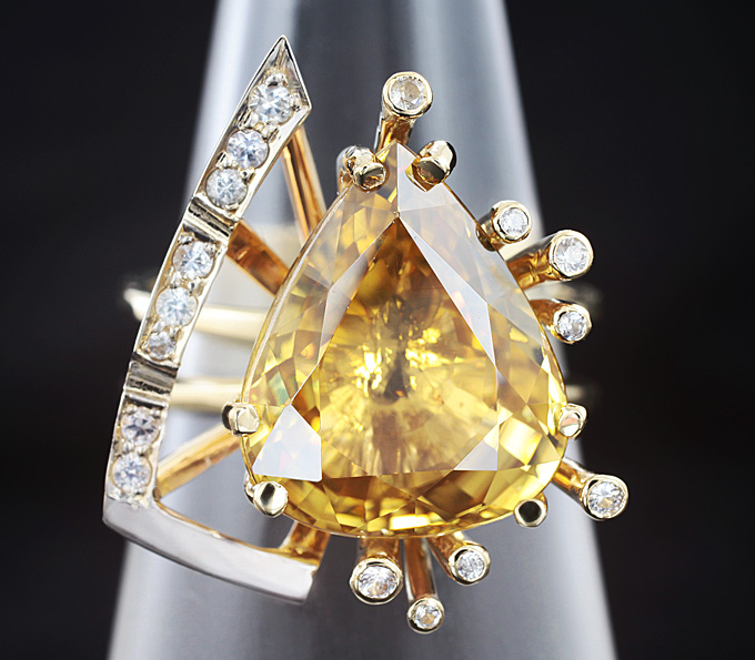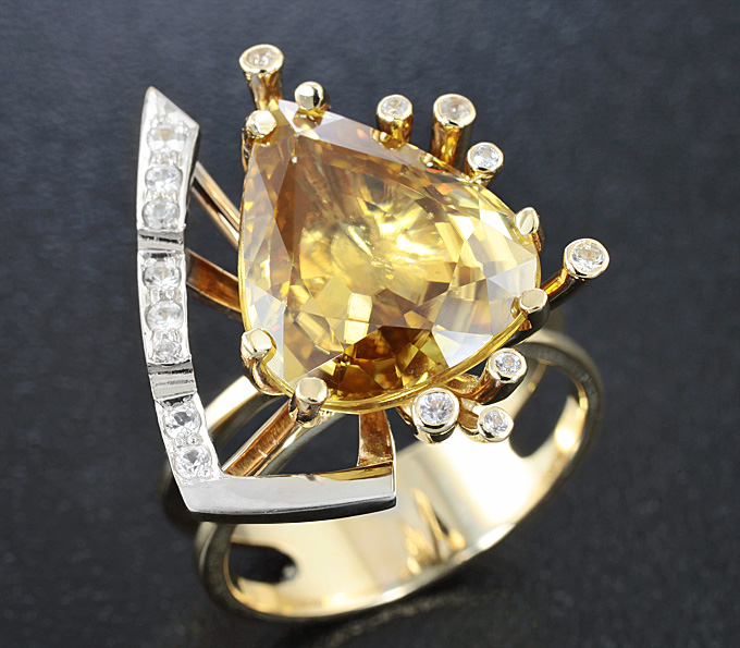 Вашему вниманию предлагается кольцо из золота 585 пробы с цирконом и лейкосапфирами! Диаметр дополнительной инкрустации 1 мм и 1,5 мм. Площадка 21 х 19 мм, высота 9 мм. Вес изделия 8,3 г. Размер 17,5. Ниже приводятся ювелирные характеристики циркона.