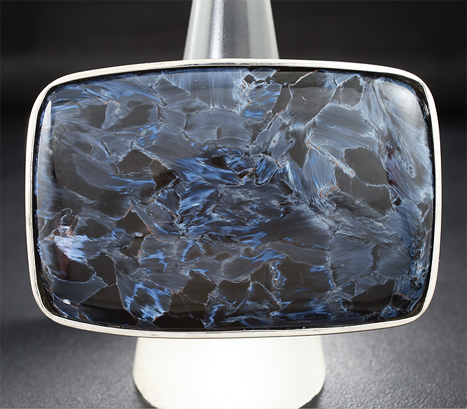 Вашему вниманию предлагается кольцо из стерлингового серебра (925 проба) c петерситом! Площадка 48 х 32 мм, высота 6 мм. Вес изделия 25,3 г. Размер 18,25. Ниже приводятся ювелирные характеристики вставки.