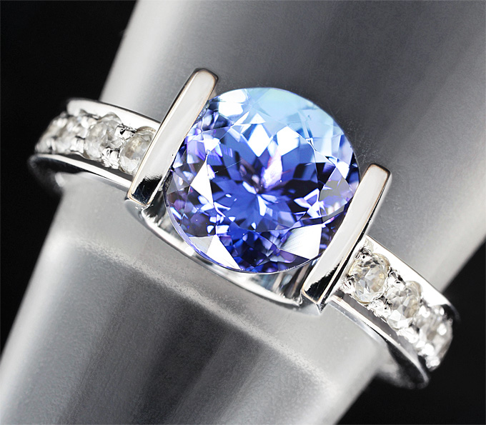 Кольцо c танзанитом и бесцветными цирконами
