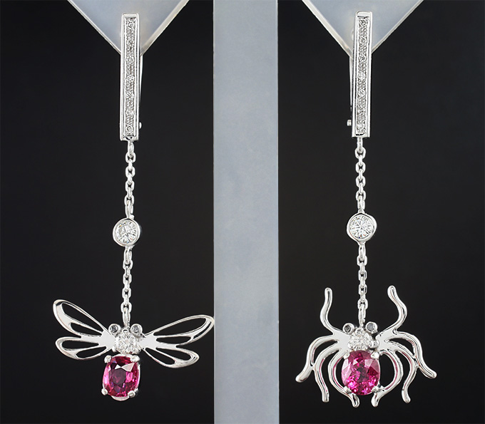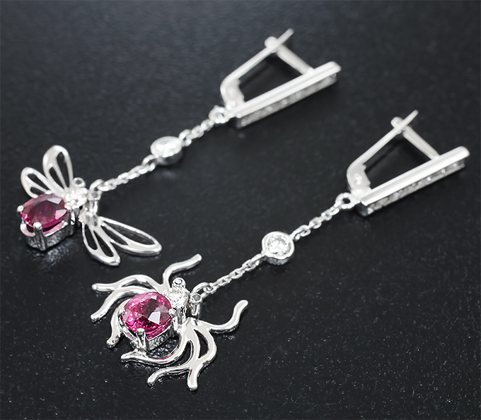 Вашему вниманию предлагаются серьги из золота 585 пробы с рубинами и бриллиантами! Диаметр дополнительной инкрустации 1 мм и 3 мм. Размеры серег с петлей 48 х 17 мм. Вес пары 5 г. Ниже приводятся ювелирные характеристики рубинов.