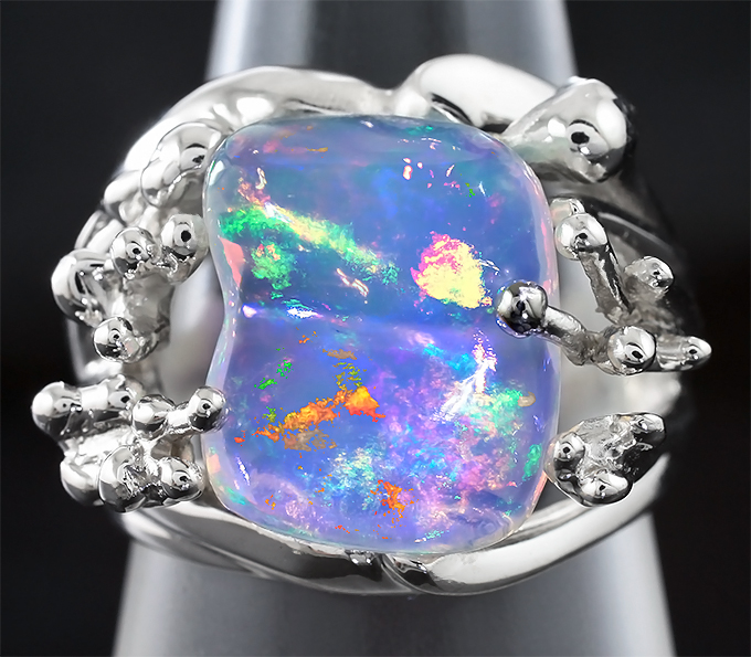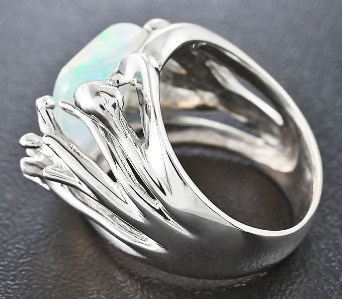 Вашему вниманию предлагается кольцо из стерлингового серебра (925 проба) c эфиопским опалом! Основные цвета опалесценции: красный, желтый и зеленый. Площадка 22 х 18 мм, высота 8 мм. Вес изделия 9,6 г. Размер 17,5. Ниже приводятся ювелирные характеристики вставки.