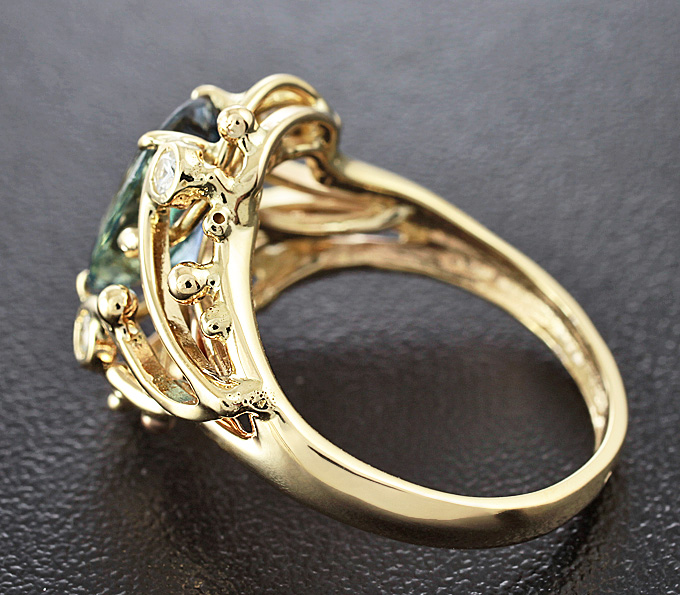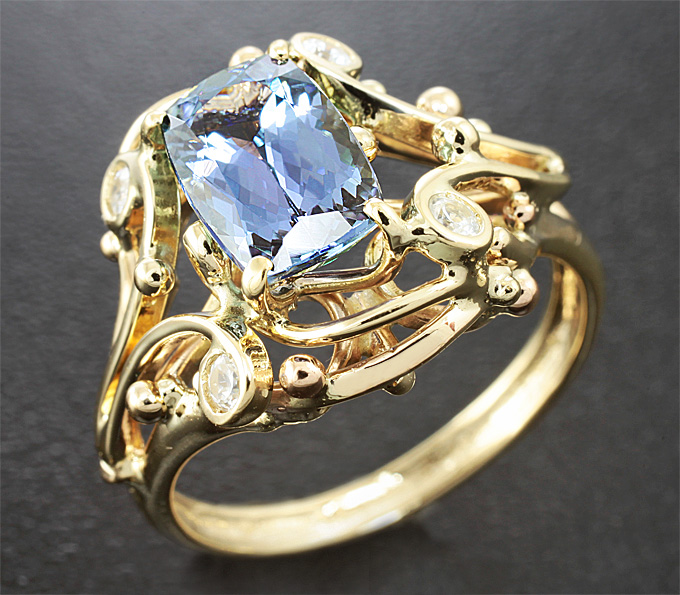 Вашему вниманию предлагается кольцо из золота 585 пробы с танзанитом и бесцветными сапфирами! Диаметр дополнительной инкрустации 2 мм. Площадка 17 х 12 мм, высота 6 мм. Вес изделия 5,9 г. Размер 18. Ниже приводятся ювелирные характеристики танзанитами.