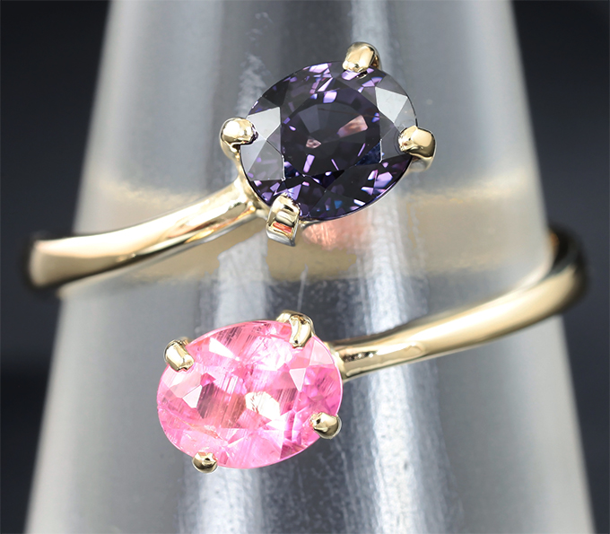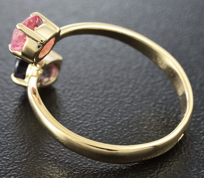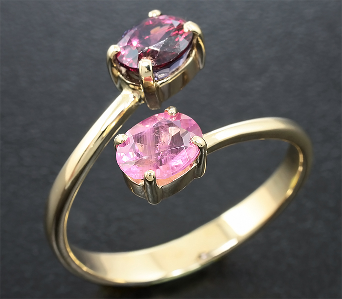 Кольцо, инкрустированное пеззоттаитом и топовым гранатом со сменой цвета